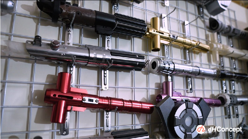 從光劍來說,光劍分的種類非常多,每個人都有自己適合的一把光劍。但我產出的光劍配色相對較簡單,以⿊色銀色為主,點綴一點點金屬紅、金屬藍,就如同我都喜歡黑色系的衣服。而且我家中的配色也都單純以木頭原色,或是米色白色為主,所以我的光劍就會呈現這種素色的色調加上紅色點綴。