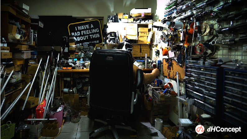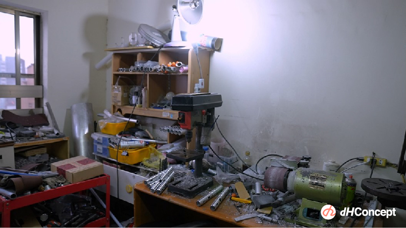 從空間來說,我喜歡在廣大不被打擾的空間進行製作,如果可以的話會希望有一間100或200坪大的工作室,裡面充滿我的工具,甚至還有收納空間去放置我的材料器具等等,最重要當然要有一些音樂或聲音,總結第一不可被打擾,第二是充滿手作的工具、加工機具、材料。