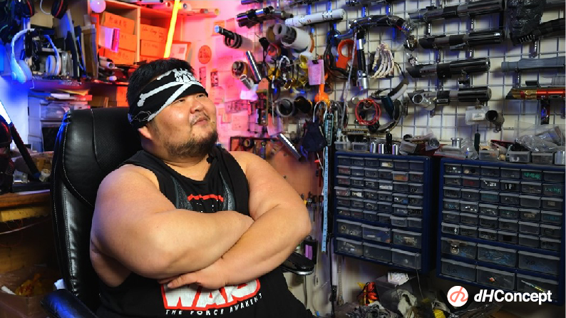 當初因為買不起所以想要自己手做,我也把這視為我的超能力,就像蝙蝠俠的超能力是” I’m rich ”超級有錢,我的超能力就是“超級沒錢”,因此什麼東西都要自己親手製作。所以我學會各種能力,需要了解材料的原理、加工的原理,促使我打造出屬於自己的光劍。