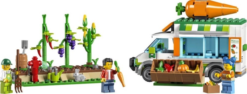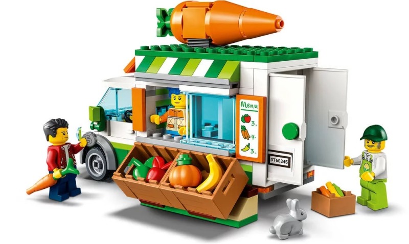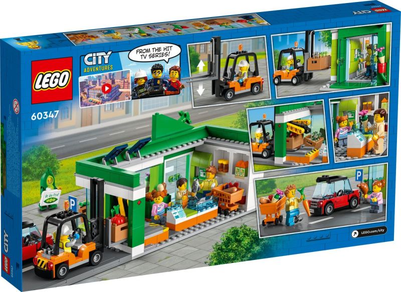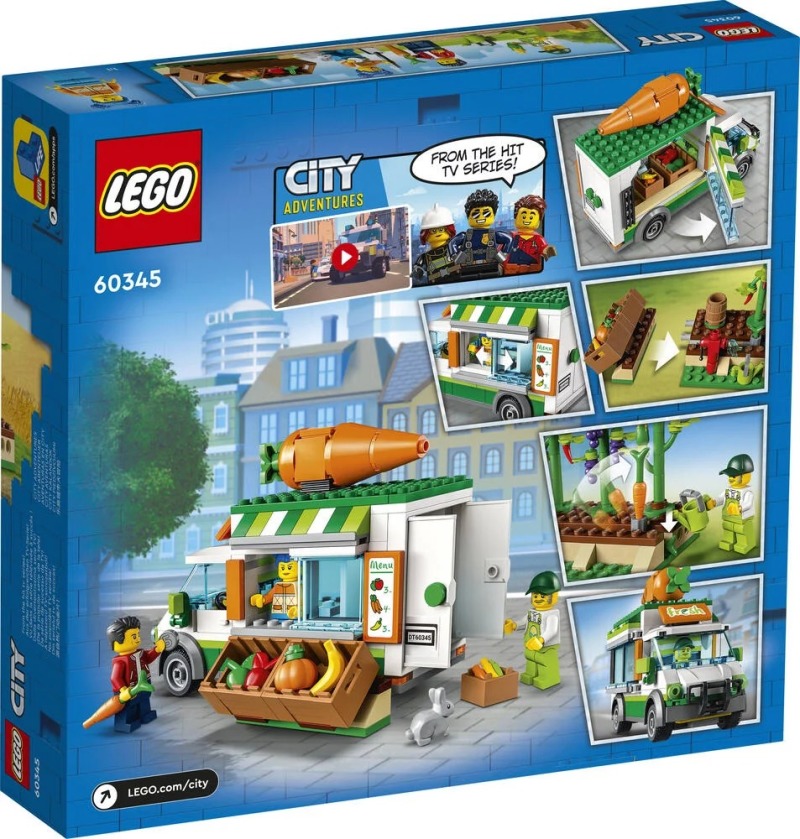 這次要介紹的四款盒組可以讓人完成「在農園、雞舍採收農作物或雞蛋,經由小貨車運送到市場,趁著還新鮮的時候賣給客人」這一整套流程,在 60345 中能夠載貨、也可以直接擺攤販售的小貨車十分不錯,而零件數較多的 60347 則是包含一個生鮮市場場景、堆高機、小客車、多個人偶的豐富組合,把玩性非常高,店員的服裝印刷、豌豆人,以及購物用小推車都相當吸引人!