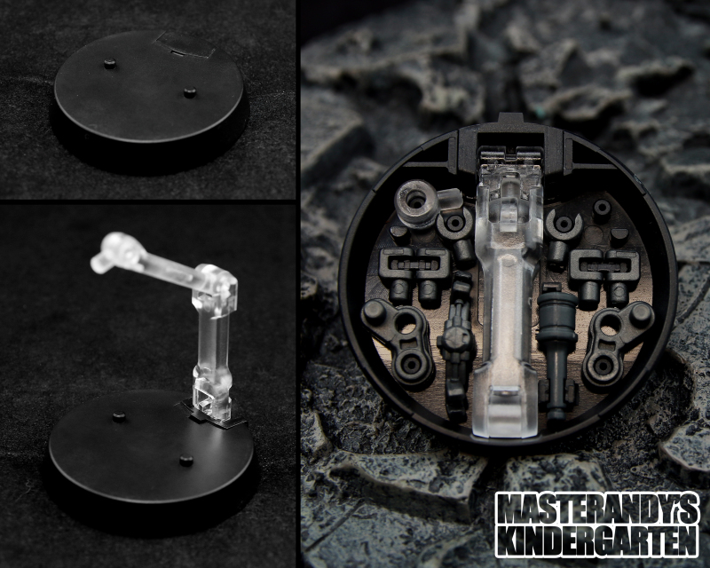 ↓相當值得讚賞的地台,不僅底部能收納各種連接零件,地台本身也能從底部翻出透明支撐架,如此一來就能表現躍空的POSE啦!