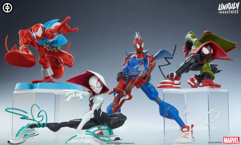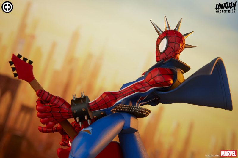 美系造型廠牌 Sideshow Collectibles 公司旗下攜手多位藝術家的設計師玩具商品系列「Unruly Industries」發表了出自 MARVEL 漫畫、由 Tracy Tubera 設計的「龐克蜘蛛人」(Spider-Punk)搪膠人偶!預計 2022 年 12 月~2023 年 3 月發貨。