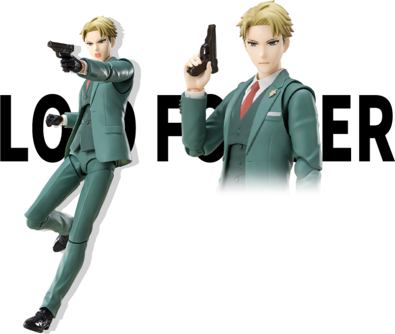 「S.H.Figuarts洛伊德·佛傑」可動人偶,造型還原帥爸爸洛伊德的特徵黃髮、搭配紅領帶的墨綠優雅西裝!除了無表情的普通臉以外,還附有無害笑容、瞇眼笑、戰鬥吶喊臉以及被安妮亞或約兒嚇到的困惑臉 4 種豐富的替換用臉部零件;搭配全身的可動關節、戴手套/無首套等替換手勢和手槍配件,能賞玩出一家人在外維持美好形象的各種精彩場景!