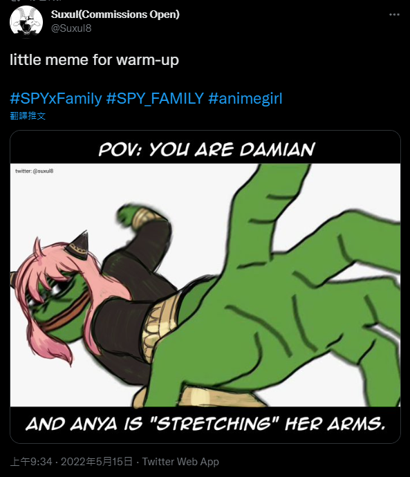 當然,也憑著《SPY×FAMILY間諜家家酒》本身的熱度下,這一集不僅依然成功地贏得絕大多數觀眾粉絲的好評,在網路上的迷因也開始暴增,特別是本來就相當火紅的歐美地區,更因此掀起了令人捧腹大笑的迷因創作了!