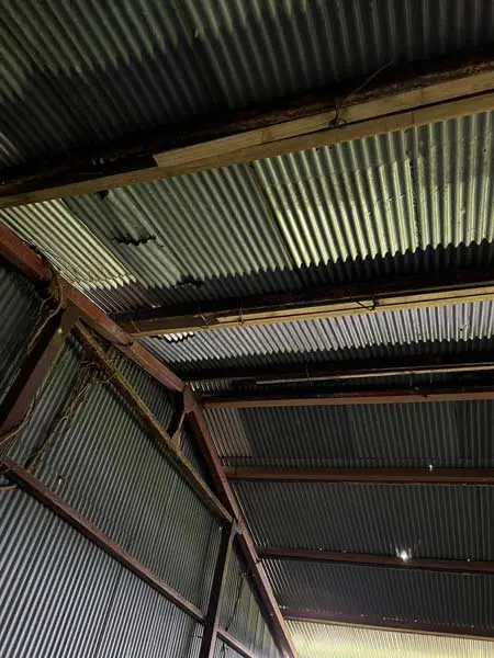 推主家中是畜牧的行業,平常把一些器材放置在附近的鐵皮倉庫中儲藏,沒想到最近因為繁忙很少去探勘,一查發現...挖靠 ! 鐵皮倉庫的天花板直接被地上生長出來的竹筍戳爆,直達天際的竹子連鐵皮都插爛了...。