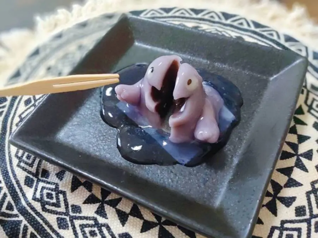 推主ぽん次郎其實是一個自學起家的業餘甜點創作家,也嘗試過多次用寶可夢的外觀打造具有特色的和菓子。她表示這是以芋頭為基底製作的,內餡加入黑豆沙具有甜甜的滋味,這看起來...應該一點也不臭吧 XD。