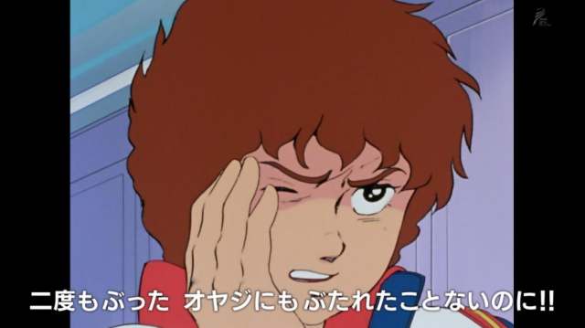 「連我爸爸都沒有打過我!」名場面出自《機動戰士鋼彈》初代動畫第九話,阿姆羅拒絕駕駛鋼彈出戰,布萊德艦長一氣之下打了阿姆羅一巴掌。之後,阿姆羅又再次頂撞艦長,又挨了一掌,哭喊 : 「你居然打第二次,連我爸爸都沒有打過我!」。這個台詞後續更是被各種動漫包含;《銀魂》、《Keroro軍曹》 與《假面騎士Revice》等作品當作捏他成句,足以見得這句話膾炙人口的程度 XD。