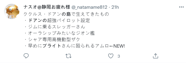 連配音阿姆羅的聲優古谷徹也表示,這句話已經是 43 年前的台詞,沒想到現在還要重新演出一次,有點辛酸 ( ? )