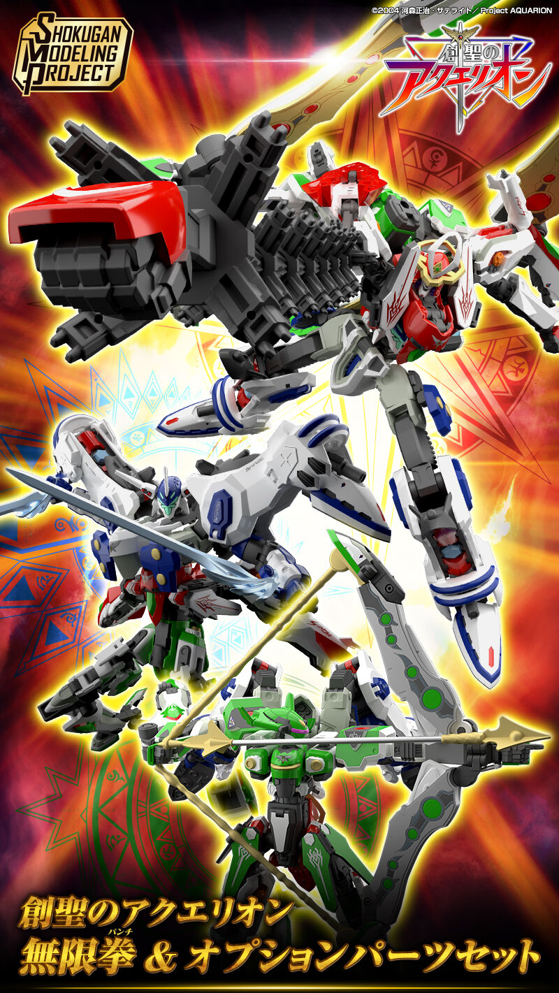 由日本萬代玩具公司食玩事業部 BANDAICANDY 發行的人氣組裝模型食玩『SHOKUGAN MODELING PROJECT』系列今日發表了出自《創聖的亞庫艾里翁》的最新商品「創聖的亞庫艾里翁」「無限拳&擴充零件組」預計於 2022 年 09 月發售的消息。