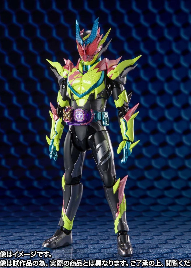 「S.H.Figuarts 假面騎士REVICE」藉由新規零件再現全身充滿尖刺的造型,複眼部分使用紅、藍兩色透明零件製作,全身施以多種珍珠色、金屬色重現本體與腰帶的鮮豔色彩。配件中附有替換造型手掌左右各 5 種,能夠搭配全身靈活可動再現劇中戰鬥姿態。