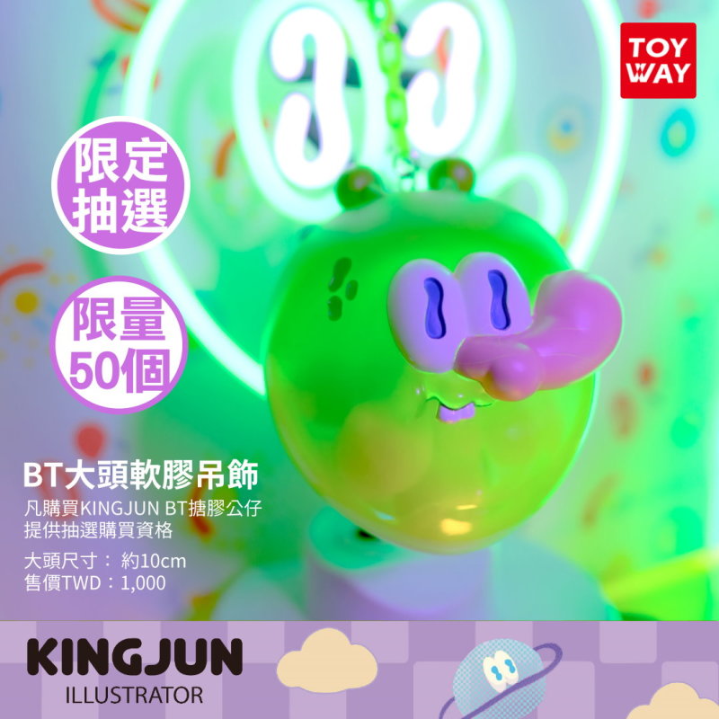 ● 限定抽選《 BT大頭軟膠吊飾 》限量50個!售價1,000元,凡現場及網路購買KINGJUN BT搪膠公仔,提供抽選購買資格