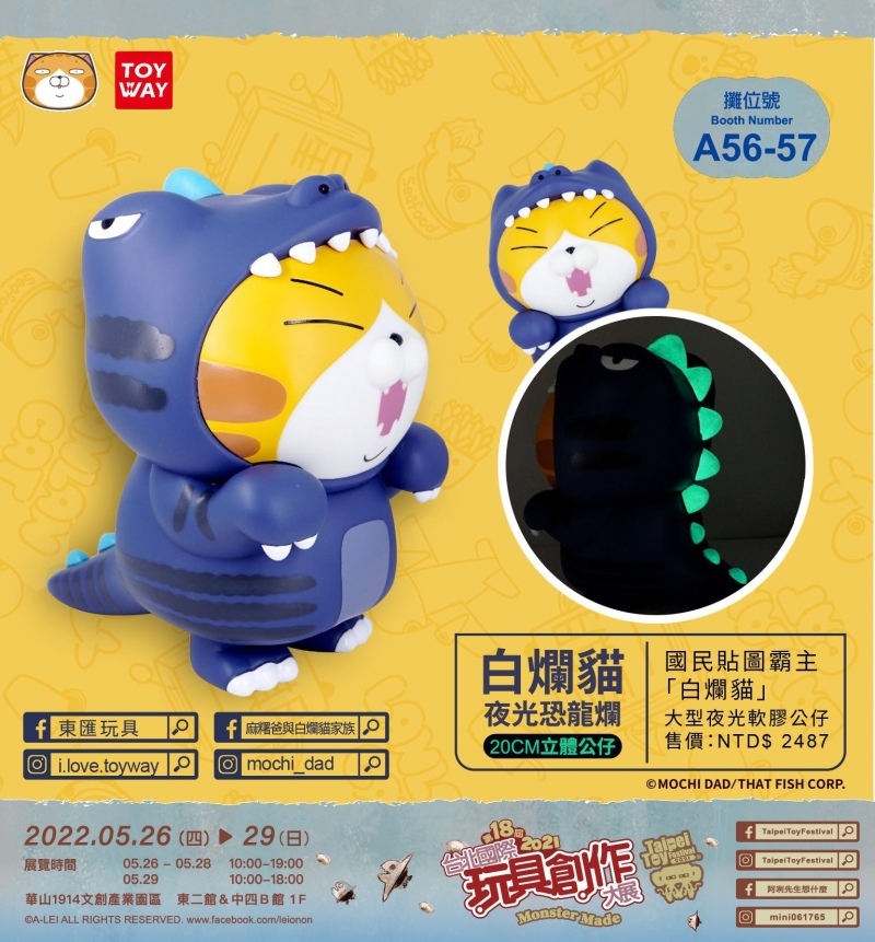 TTF搶先首賣《白爛貓-夜光恐龍爛20CM立體公仔》