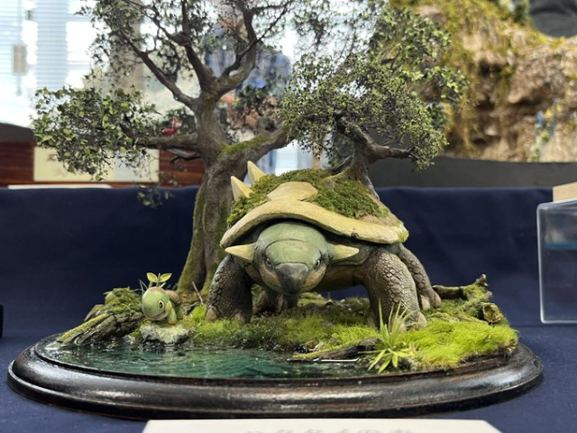 去年末發行的《寶可夢 晶燦鑽石/ 明亮珍珠》相信有不少寶可夢購買遊玩,目前在任天堂財報上也為年度最熱銷的遊戲作品。今天來介紹一位日本專門製作場景模型的原型師-くまごろ ( @kumagoro_mk2 ),製作了以遊戲中神奧地區的一座森林-「百代森林」為主題的立體場景模型,上面有著土台龜&草苗龜親子,搭配精緻的場景,在近期「静岡ホビーショー 2022」大受好評。