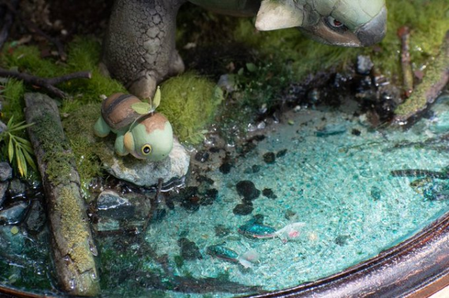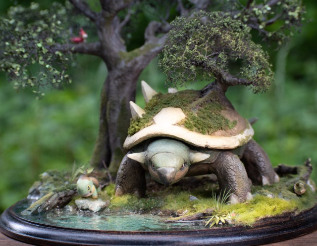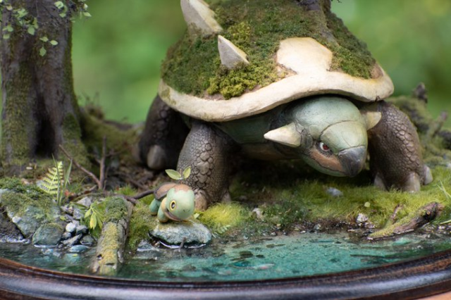 選擇土台龜&草苗龜這對親子,雖然在遊戲中並不能在百代森林遇到,不過對於くまごろ來說,這是他最喜歡的草系寶可夢,也是神奧御三家的草系代表。尤其草苗龜的進化有著自然生長的曲線,也能看到他在土台龜龜殼上的樹木與殼上的草叢有著精細的刻劃製作。
