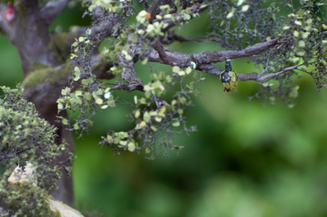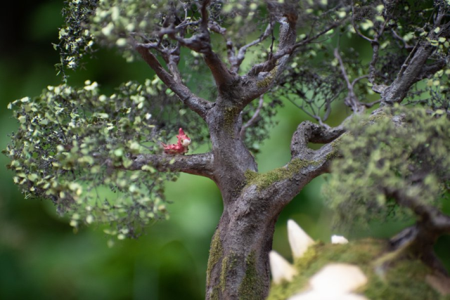 這個作品名為「百代森林」,為珍珠鑽石遊戲中玩家前期的冒險地點之一。而くまごろ則將森林的意象,以真實的樹木製作而成,並透過地台的草皮與旁邊的河水呈顯出森林內欣欣向榮、生意盎然的麼樣。