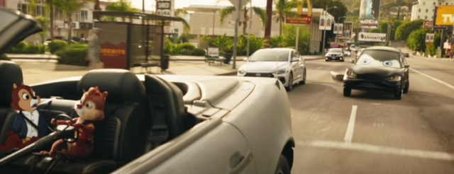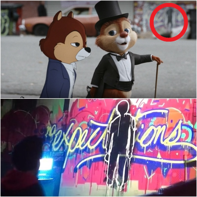 奇奇與蒂蒂下車後,可以看到牆上有《蜘蛛人:新宇宙》中邁爾斯噴漆塗鴉的壁畫。