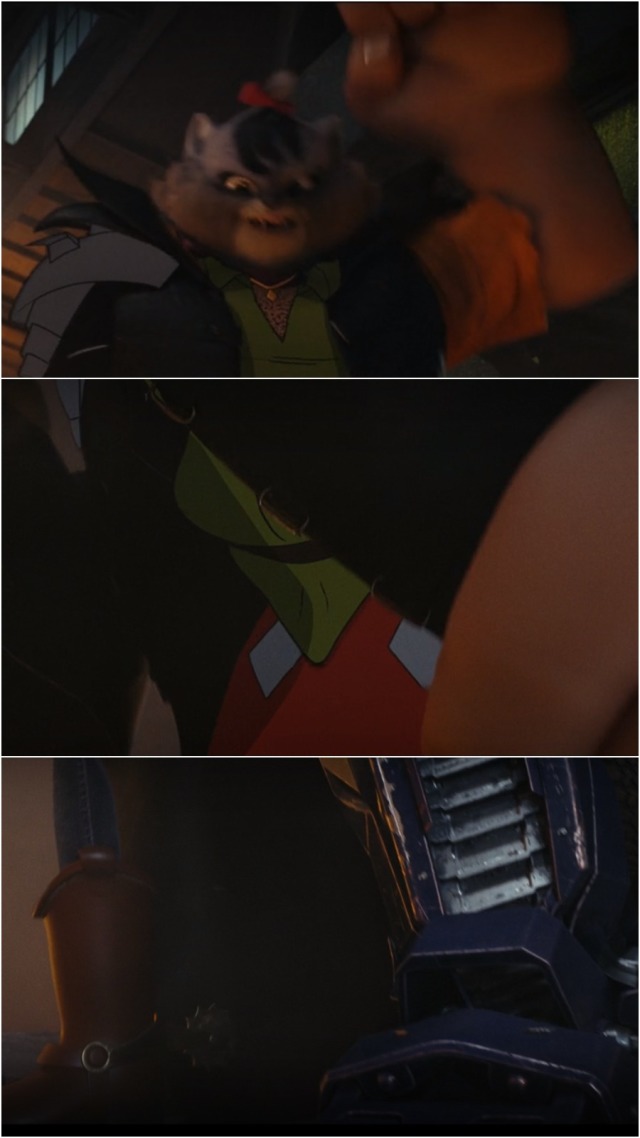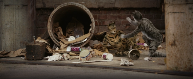 奇奇與蒂蒂被載到恐怖谷區,巷子裡出現2019年《貓 CATS》音樂劇改編電影中慘不忍睹的貓人。
