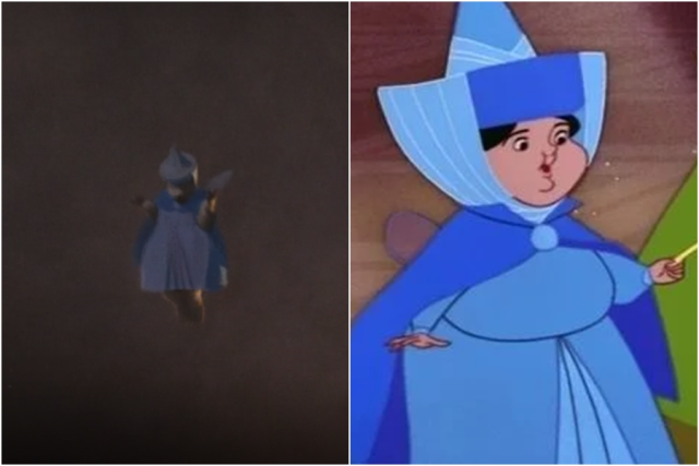 可樂熊被光束射中,變成《睡美人》裡的藍色仙子 Merryweather。