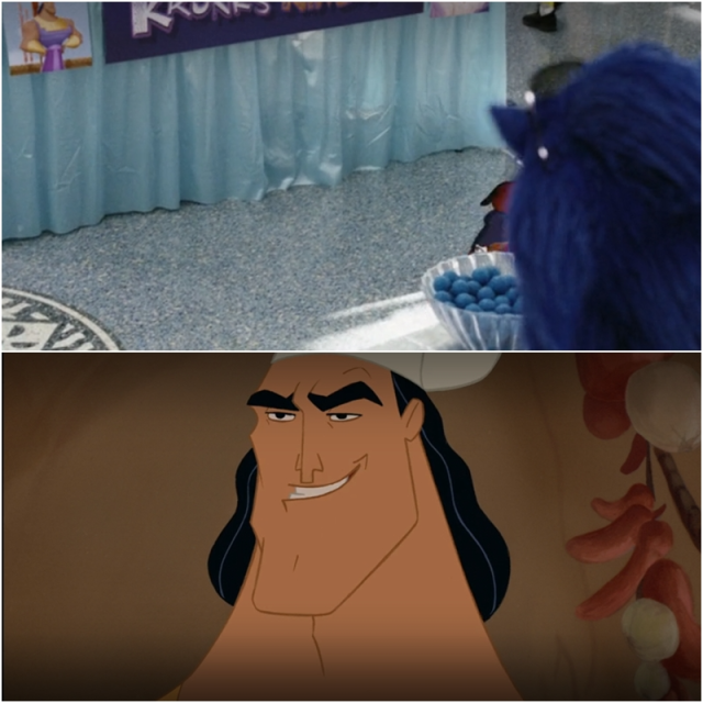甜點彼得被光束射中後,長出了《變形金剛》柯博文的左腳、《玩具總動員》胡迪的靴子、米老鼠的衣服、無敵破壞王的左手、《忍者龜》反派許瑞德的右手、《貓兒歷險記》瑪麗貓的臉。還發「庫伊拉」的邪惡笑聲。