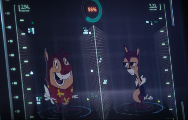 電影開宗明義告訴你,這是一個人類與卡通人物共存的世界觀,而1990年代觀眾熟悉的《救難小福星》卡通,是他們所「演出」的劇集。 因此他們保有一般人類的聲音,在演戲時才會發出熟悉的花栗鼠聲音~