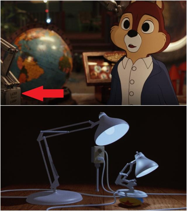 蒂蒂有一整間倉庫的《救難小福星》周邊,但是有一個舊檯燈改造的放大鏡值得注意。因為它就是皮克斯最著名的吉祥物檯燈 Luxo Jr.,上面甚至直接寫著 Luxo Lamp,告訴你這不是巧合!