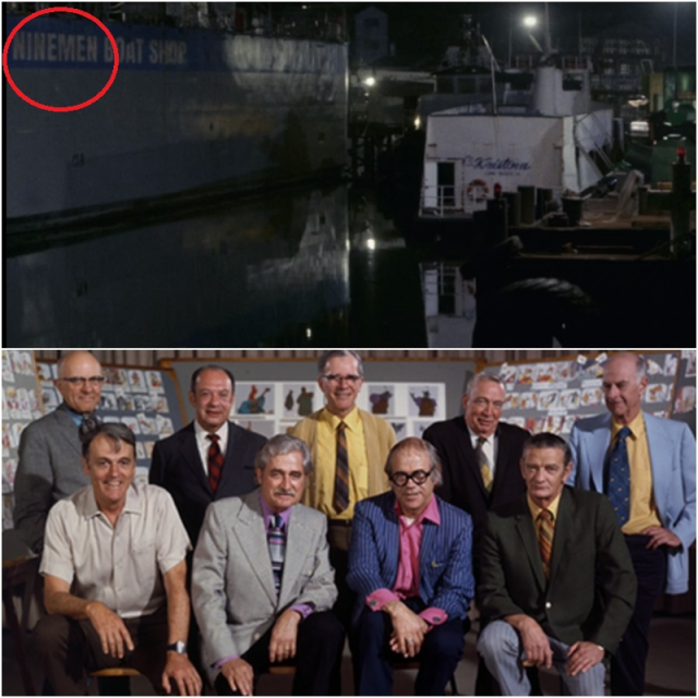 奇奇與蒂蒂逃出秘密基地,可以看到遠處寫著 Nineman Boat Shop,這個 Nineman 致敬了「迪士尼九大元老」,是華特迪士尼工作室最早的一批動畫師,目前九位元老如今都已不在人世。