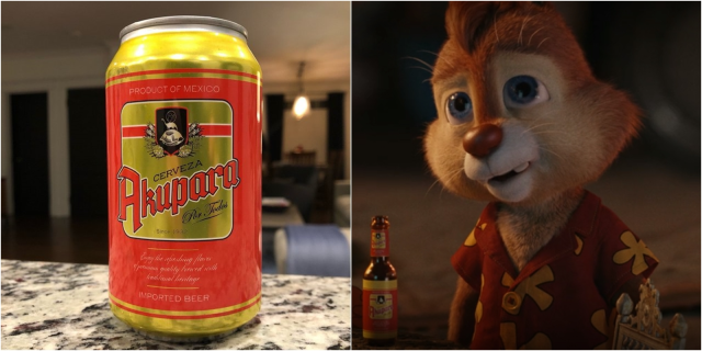 一部闔家觀賞的電影中,當然不能置入現實中的啤酒品牌!因此蒂蒂的幕後配音員 Andy Samberg 就偷渡他在2020年主演電影《棕櫚泉不思議》中的虛構啤酒「Akupara」進來了~