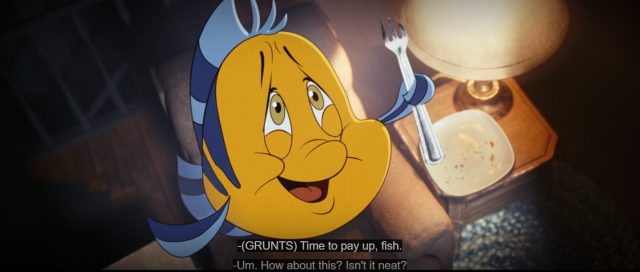 小比目魚被甜彼得綁架時,想用「dinglehopper」叉子來還債,這是《小美人魚》中他們對叉子的稱呼。他還問了「看起來很漂亮吧?」(Isn’t it neat?)這句話來自《小美人魚》的歌曲《Part of Your World》。