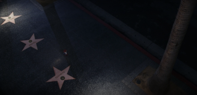 星光大道上的星牌名字,包括「瑜珈熊」(Yogi Bear)、《海綿寶寶》「章魚哥」(Squidward)以及《快打旋風》的「春麗」(Chun Li)。