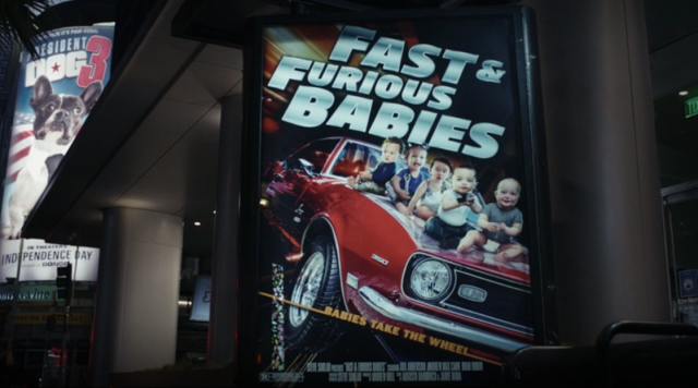 《玩命關頭寶寶》電影海報,可能諷刺了該系列逐漸脫序的劇情開發。仔細看左下角會發現本片居然還是R級的!