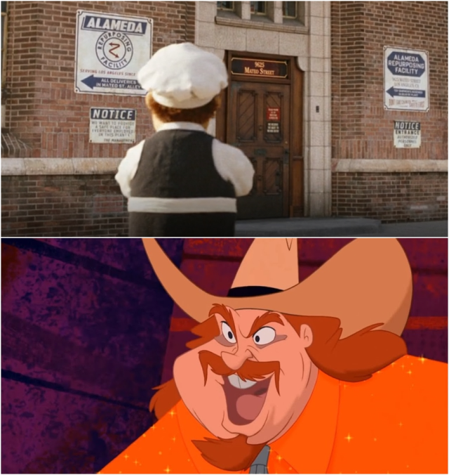 另外,奇奇與蒂蒂穿的工人服裝上,名牌分別寫著 Steve 和 Bill,分別致敬兩位科技公司大人物 蘋果公司的 Steve Jobs 和微軟科技的 Bill Gates.