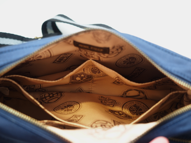 包包內襯是旅行貼紙風格的獨創印花設計,是「草帽一行人」冒險途中遇到的難忘地點,例如有娜美的故鄉「可可亞西村」的徽章圖樣,其他趣味點就讓海賊迷自己翻遍包包內側自己發掘!