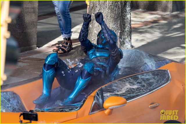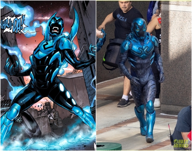 在這些片場照中,我們不僅可以清晰地看見「三代藍甲蟲」的服裝樣貌,拿起DC Comics原作漫畫的造型來作比對的話,更能夠發現在這一次的設計上真的可以說是超級神還原,包含那標誌性的藍黑相間的配色,整體韻味都將這名少年英雄呈現得有模有樣。