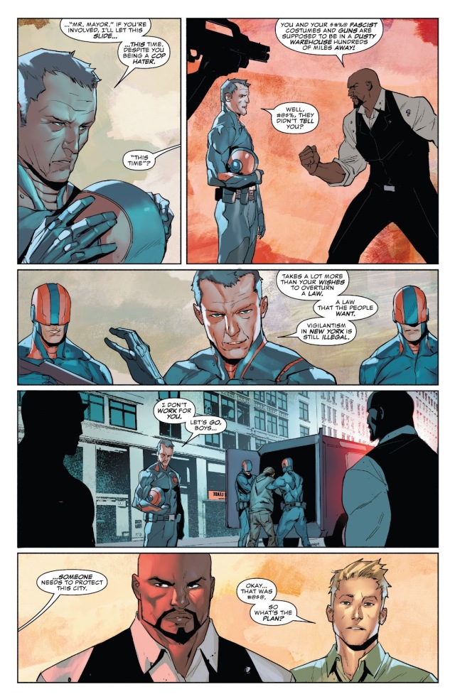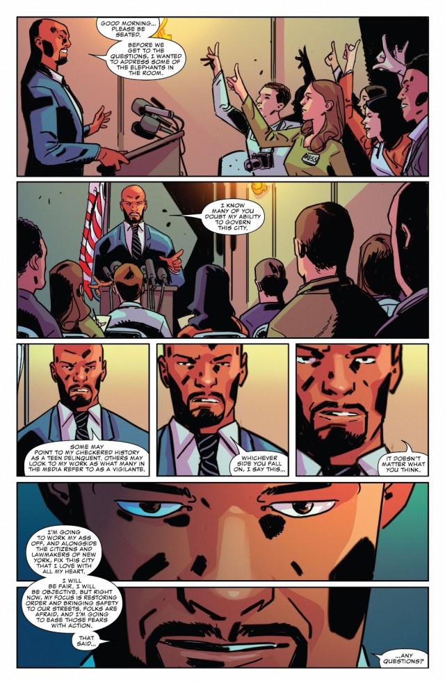 最後,在新任市長的第一次公開演說當中,盧克深知他作為一個黑人和一個超級英雄來當上紐約市市長會給人什麼想法;但是他才不在乎這些人會有什麼想法!