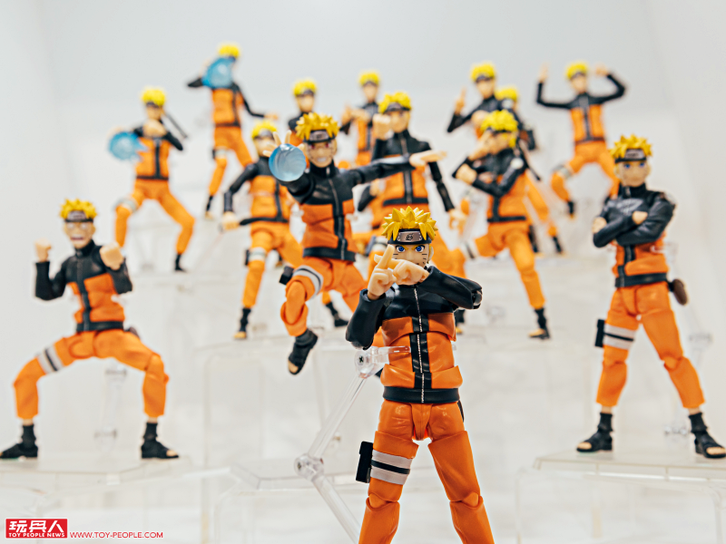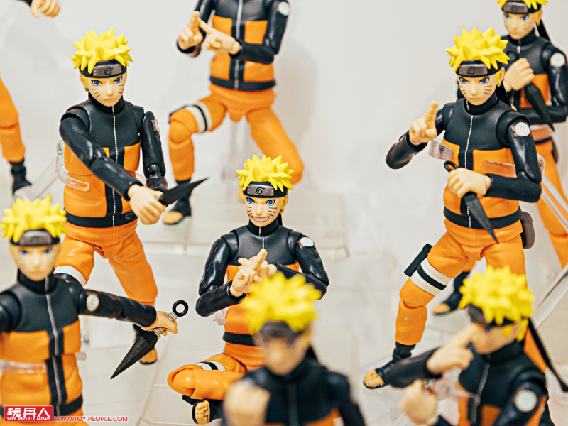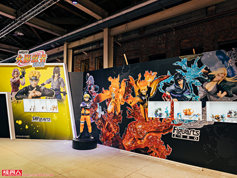《火影忍者》主題區這邊展出了 S.H.Figuarts 系列以新規造型製作的第七班成員:漩渦鳴人、春野櫻、宇智波佐助,除了十分搶眼、連關節都如實重現的巨大化鳴人立像之外,眾多的鳴人可動人偶也是一大看點!而且還有放上新舊版本,直接讓你現場比對、感受新造型的魅力。