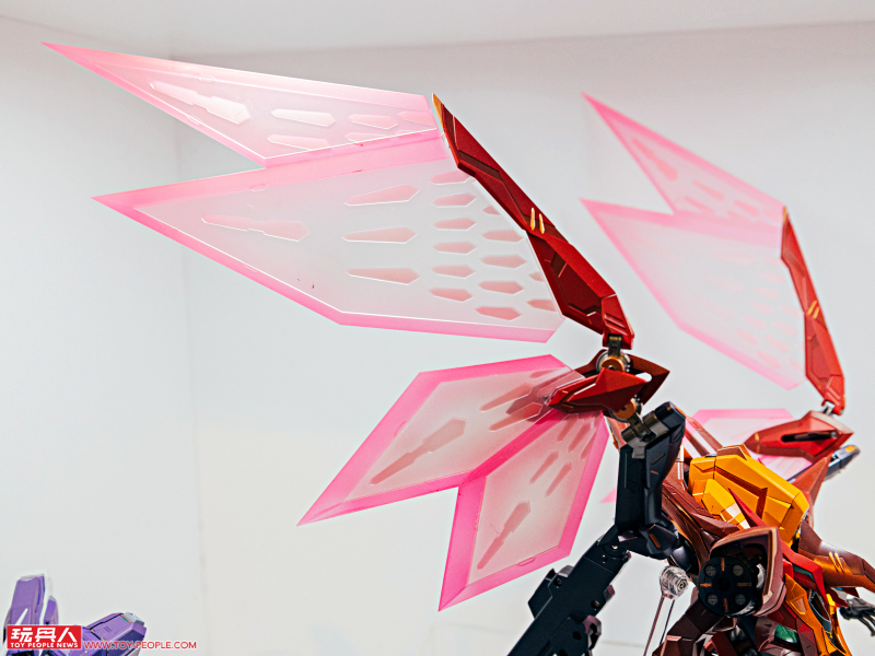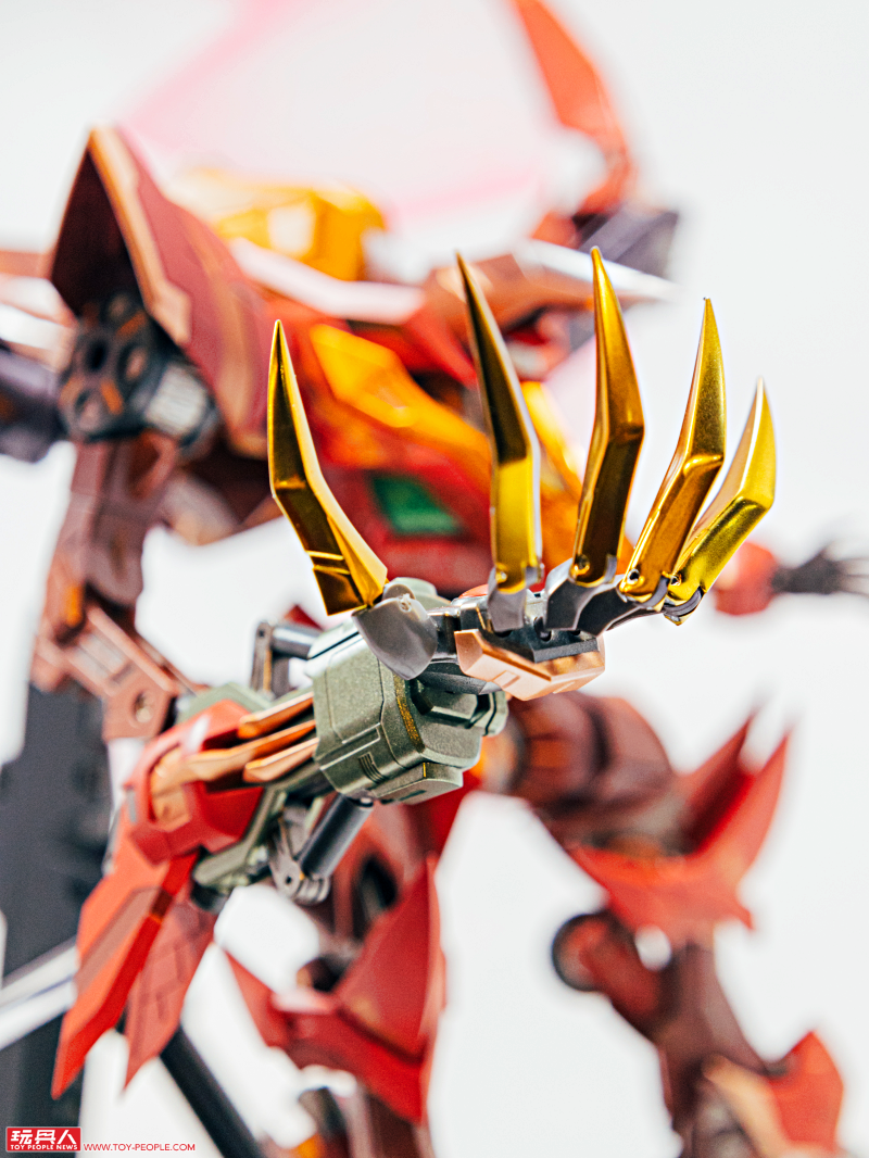 接著來到 METAL BUILD 系列展區,造型銳利誇張的「DRAGON SCALE 紅蓮聖天八極式」直接煞氣炸裂!