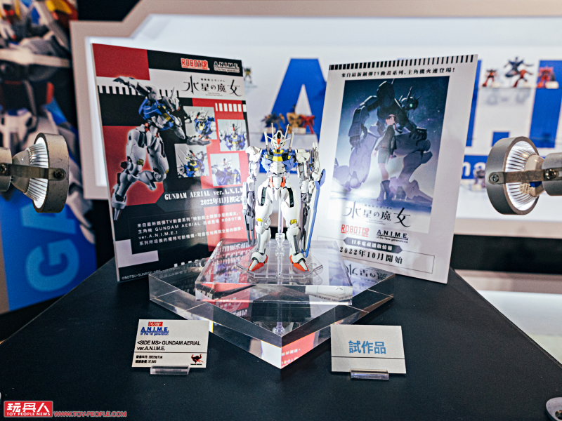 接著讓我們移動腳步來到下一個展館,看起來超過癮的 ROBOT魂 ver.A.N.I.M.E. 系列展示牆,豐富機體一次排開!出自《機動戰士鋼彈 水星的魔女》的主角機「GUNDAM AERIAL」,以及展場限定的透明配色 RX-78-2、鋼彈試作1號機 FIRST TOUCH 在這裡都有展出。