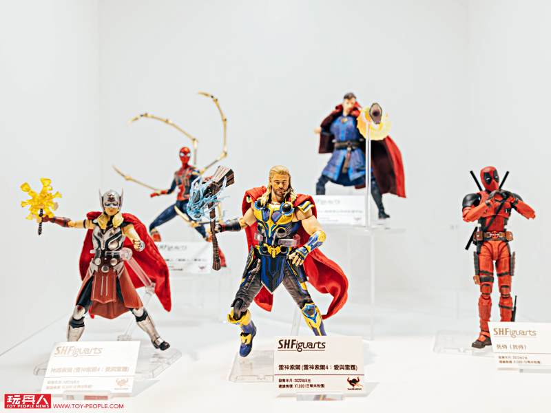 再來就是收錄《魔法少年賈修》、《SPY×FAMILY間諜家家酒》、《超魔神英雄傳》、《巴斯光年》、《雷神索爾:愛與雷霆》......等日本、歐美熱門作品的新商品展示牆。