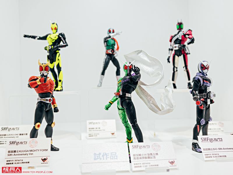《假面騎士》主題區展示了 S.H.Figuarts 系列「假面騎士DEMONS 蜘蛛基因組」、「假面騎士EVIL 蝙蝠/胡狼基因組」,超帥的「假面騎士W 王牌旋風形態 風都偵探動畫化紀念版」、「全開凱薩」......等新作。