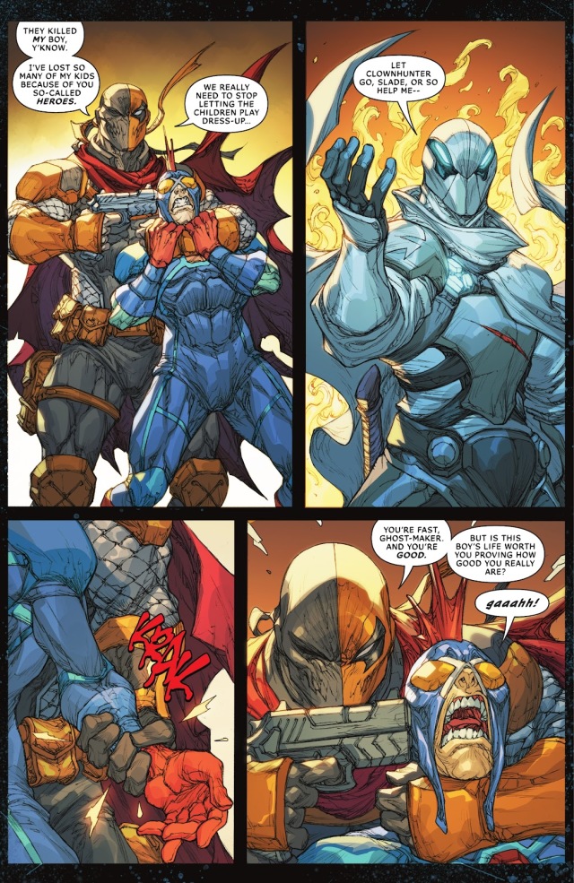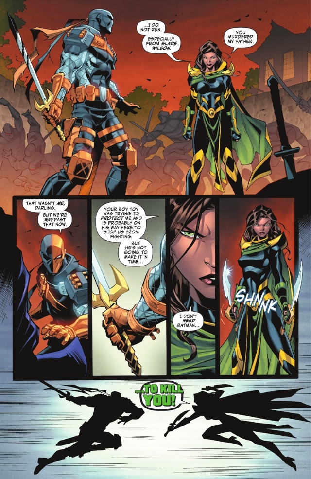 蝙蝠俠、羅賓、幽魂製造者(Ghost-Maker)和蝙蝠俠群英會(Batman Inc.)也都加入了戰局,試圖拯救那些祕密結社的超級反派們。但是在本周的《喪鐘群英會》(Deathstroke Inc.)和《羅賓》(Robin)兩部連載的劇情當中,群英會當中的英國蝙蝠俠「兜帽」(The Hood)和復生都在大量忍者的攻勢之下喪生,導致憤怒的喪鐘決定不再逃跑,與女兒「破壞者」(Ravager)一起展開絕地大反擊!