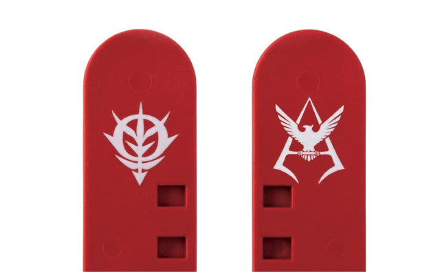 該支架以夏亞的代表色紅色為主體,並且印有吉翁公國徽章與代表夏亞的標誌,而且這個支架可以在不使用時摺疊起來方便攜帶,讓你在使用PC或筆電時能夠更快速地拿出來使用且更快速地操作,有如「紅色彗星」一般。