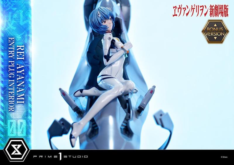 Prime 1 Studio「綾波零 插入栓內部(Entry plug interior)」1/4比例雕像,尺寸全高達 64 公分,以精密的超高水準打造出坐在插入栓內部駕駛座的機體+綾波零人物雕像!透過 P1S 的上色與造形技術表現出柔軟膚質、俏麗藍色短髮、神秘的紅色雙眼以及一身光澤感、點綴有黃綠配色的白色駕駛服!緊緊包覆纖細身軀,嶄露曼妙的身材線條,手輕放在胸前,身體倚靠在座位上的姿勢也充滿魅力~從各角度欣賞都是滿滿細節~