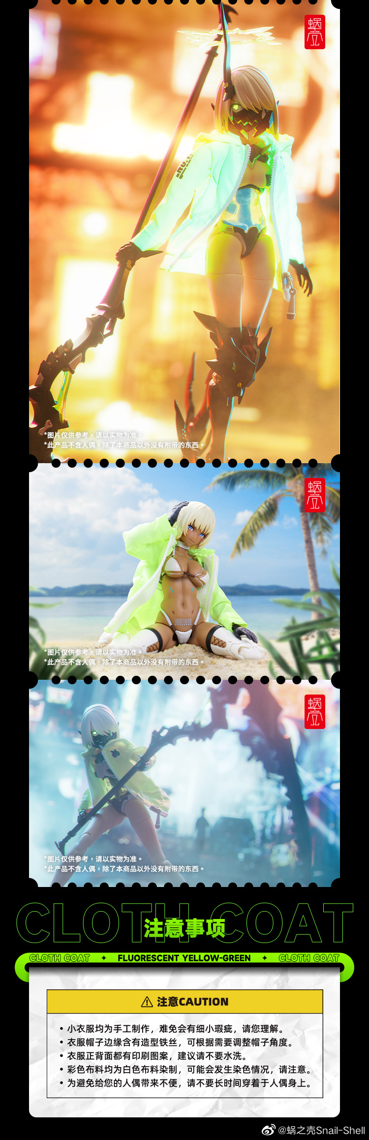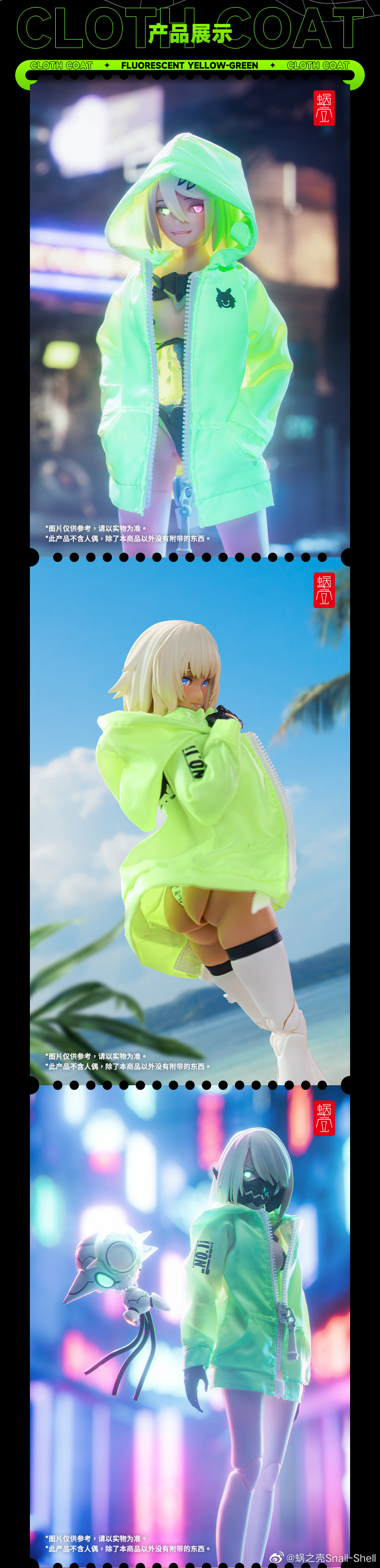搭配另售的『G.N.PROJECT』系列「螢光黃綠色布製外套」,可適用於1/10、1/12比例人偶,賞玩系列人偶甜萌又帥氣的造型~