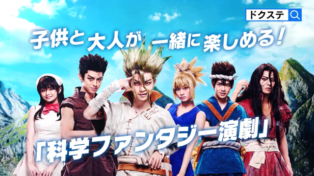 在今年 3 月結束漫畫連載的漫畫《Dr. Stone新石紀》,在五年間的連載結束。在五月初時宣出了將會製作真人舞台劇版本-THE STAGE 〜SCIENCE WORLD〜,帶給小孩與大人皆能同樂的「科學奇幻演劇」。今日 ( 5/30 ) 官方釋出了人物的定裝造型與視覺圖,確定將於 2022 年 7 月 9 日起於東京 Sunshine Theatre 開演,7 月 21 日則移至兵庫 AiiA 2.5 Theater Kobe 演出。