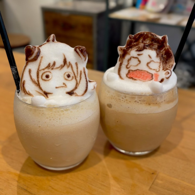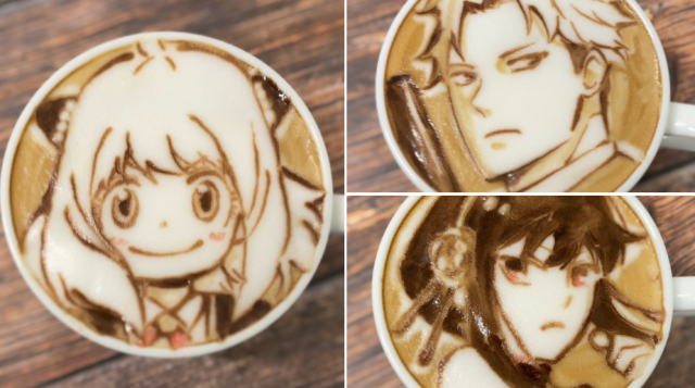 擅長製作拿鐵拉花的 NAOKI,將動畫中安妮亞與次子兩人在校園中爭吵的畫面重現,以兩人趣味的臉龐製作成立體拉花,還原度真的十分驚人。