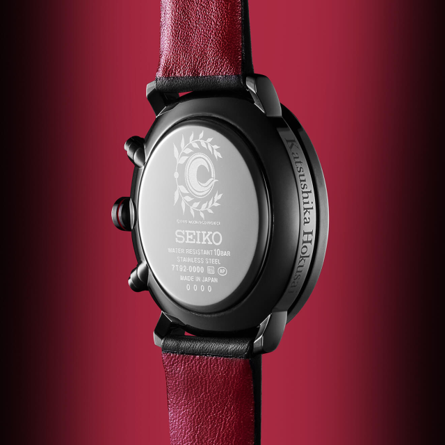 秒針也以葛飾北齋的武器-畫筆來設計,手錶本體側編也印有其名稱的英文文字。