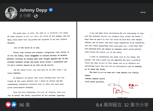 強尼戴普(Johnny Depp)與前妻安柏赫德(Amber Heard)的家暴誹謗審判今日正式宣布判決結果,赫德在 2018 年於《華盛頓郵報》(The Washington Post)描述自己遭到家暴的專欄文章確定被認為是惡意的誹謗,須賠償戴普共 1500 萬美元( 1000 萬美元的補償性賠償和 500 萬美元的懲罰性賠償,但基於維吉尼亞州對於懲罰性賠償的法定上限,赫德需要支付的懲罰性賠償最終則調降至 35 萬美元)。