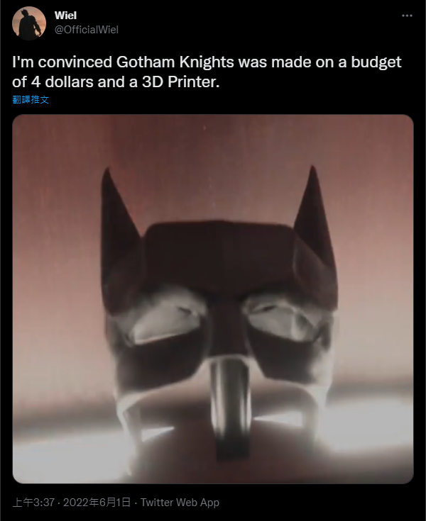 ▼網友吐槽:這廉價的蝙蝠面具看起來像是兒童的Cosplay服裝