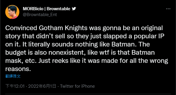 也因此,在Twitter上不僅開始充斥著對於CW DC影集《高譚騎士》的不看好,更直言表示這顯然就是一部掛著「蝙蝠俠」IP的原創電視劇,畢竟不管從哪個角度來看,一點「蝙蝠家族」的氛圍都沒有,且比起講述「蝙蝠俠已死」的故事,或許將在10月發售的DC電玩《高譚騎士》,才是最讓DC粉絲值得去期待的作品。