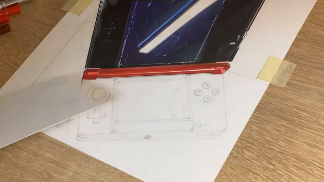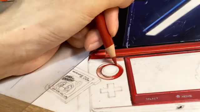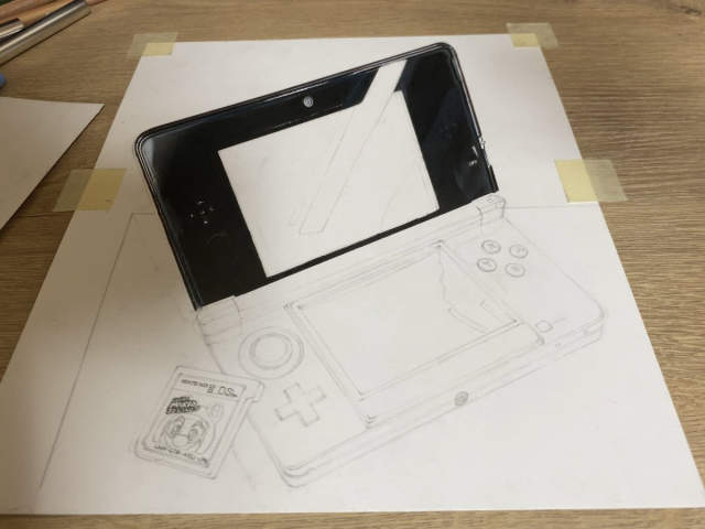 其實像這種「3D立體畫」,除了要有極佳的空間感外,也必須透過紙張以及立體效果的設計來繪製。而擅長這方面的推主慧人,這次選擇自己學生時代擁有的 3DS 來挑戰,想呈現上面有著的使用痕跡,也是給自己一個回憶的表現。